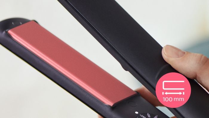 Подовжені 100-міліметрові пластини забезпечують кращий контакт з волоссям і дозволяють досягти чудових результатів випрямлення за менший час.